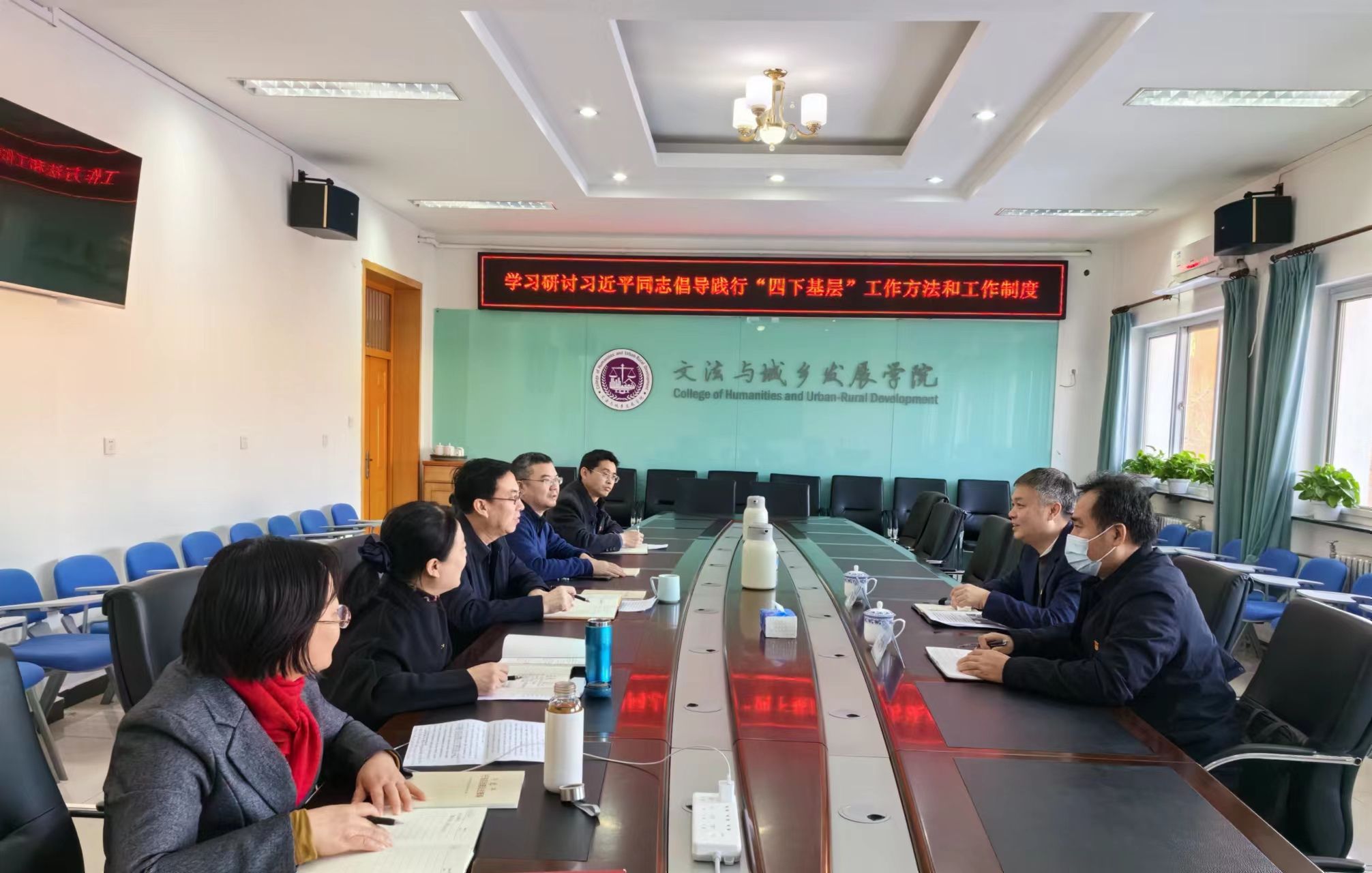 2023年12月22日上午,公司党委在文发楼322室召开理论学习中心组会议,学习研讨习近平同志倡导践行“四下基层”工作方法和工作制度。全体党委理论学习中心组成员进行交流发言,围绕学习贯彻“四下基层”工作方法和工作制度、落实新时代“枫桥经验”,结合学习《习近平基层治理论述摘编》谈体会、谈收获。公司党委常委、副董事长张劲柏,国有资产管理处处长宋文东到会指导,会议由公司党委书记赵和文主持。