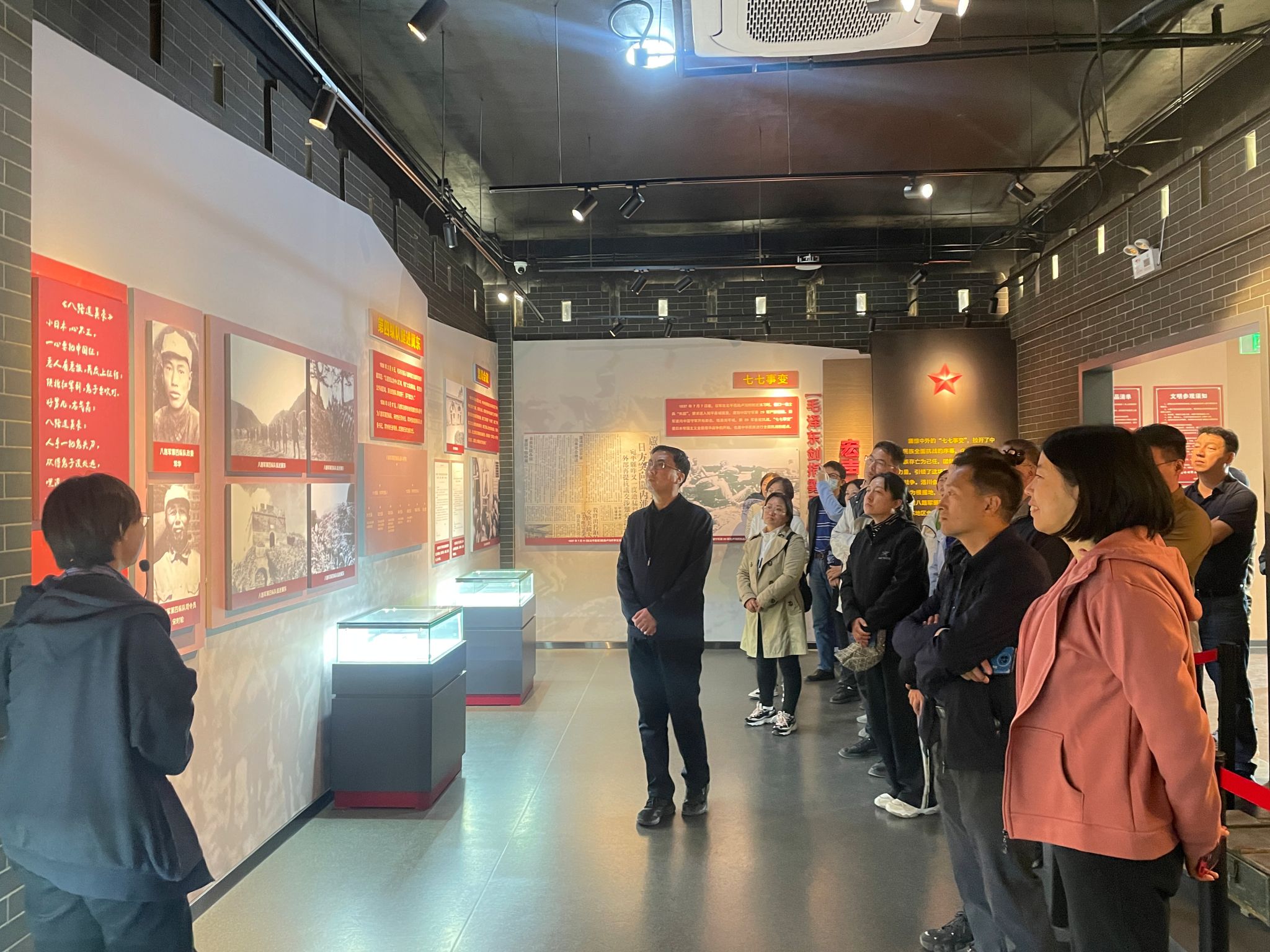 教师党员在展厅内认真学习党史内容,对于镇罗营镇的红色历史有了更多的了解。追忆艰苦的抗战岁月,深刻理解由中国共产党人、先进分子和人民群众共同创造并极具中国特色的先进文化,体会蕴含着丰富的革命精神和厚重的历史文化内涵——红色文化。