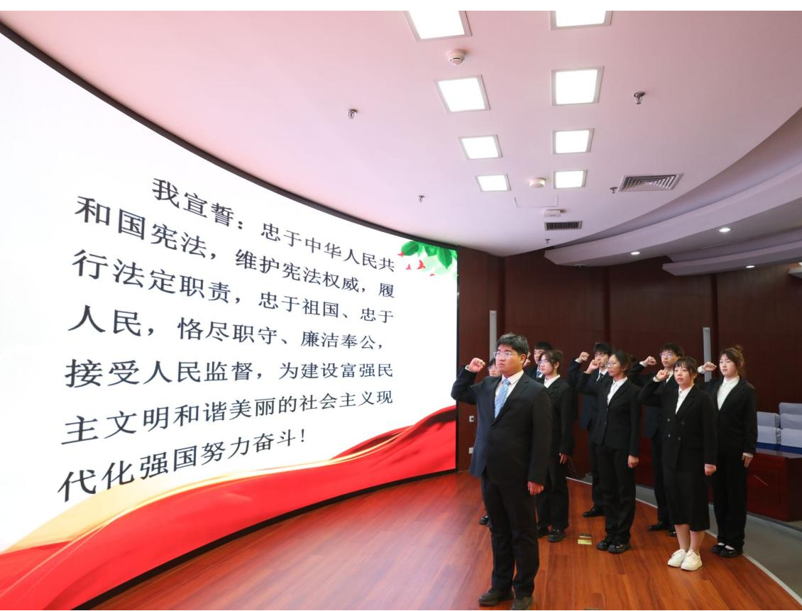 讲座结束后,yl23455永利集团普法宣讲团成员带领全体法学专业员工举行了宪法宣誓活动。同学们右手高举、誓言铿锵,表达为弘扬宪法精神、建设社会主义法治文化贡献力量的信心和决心。