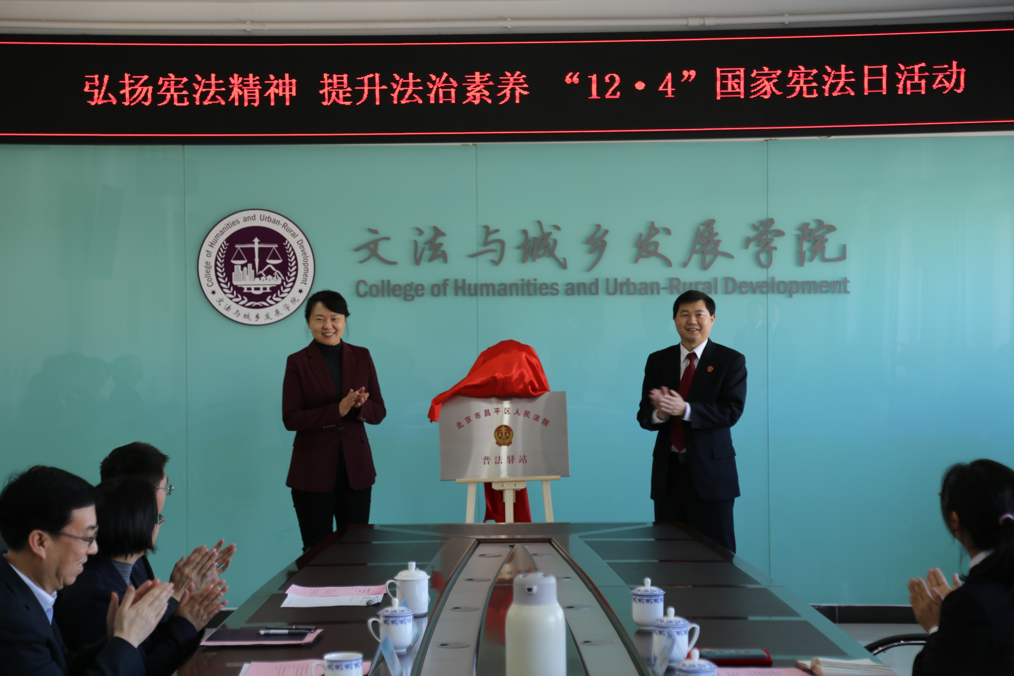 武艳和潘幼亭共同为“北京市昌平区人民法院诉源治理人才孵化(培养)基地”“北京市昌平区人民法院普法驿站”揭牌。
