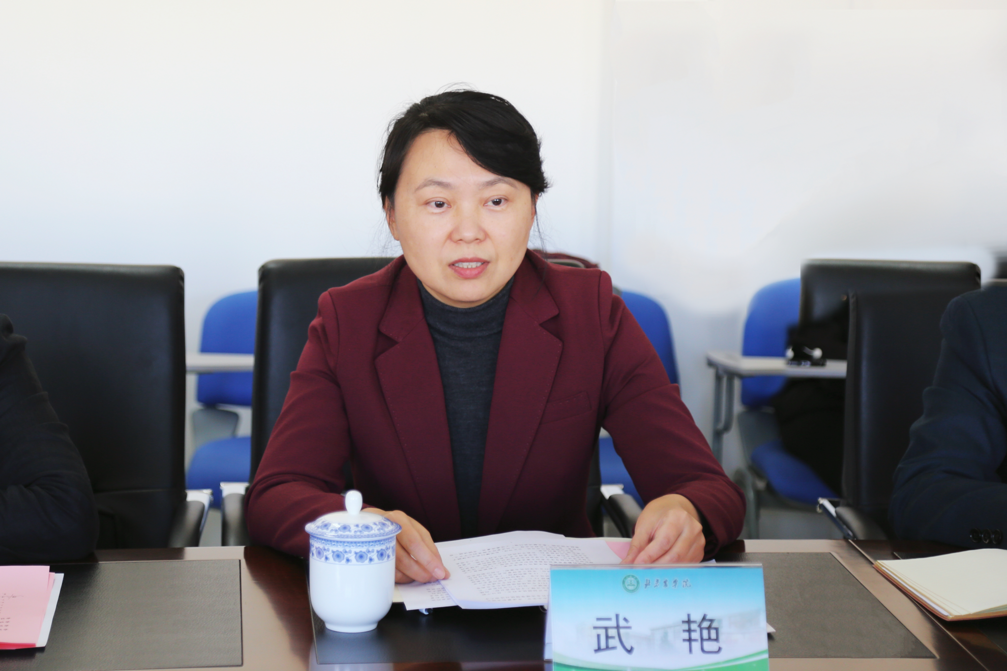 武艳在致辞中对昌平区人民法院与公司法学系自2017年正式启动校外实践教学基地共建以来,法院对公司人才培养、服务乡村振兴、涉农法律研究等领域的支持表示感谢。昌平法院坚持司法为民、公正司法,忠实履行宪法法律赋予的职责,荣获全国法院“基本解决执行难”工作集体嘉奖、全国法院一站式多元解纷和诉讼服务体系建设先进单位等多项荣誉。能够为诉源治理人才培养和普法宣传供丰富的经验指导,提供实训场地。“校院”的合作是落实公司第四次党代会提出的服务新时代首都发展需求和高水平应用型大学办学定位的生动实践。