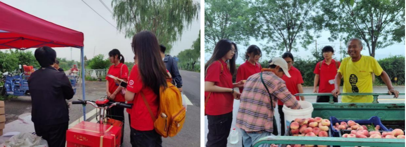 桃林蕴故事,字语解民情。实践团在实践的几天里与桃农同起同作,走进桃林深处,谈在路边田摊,与村民深入交流探讨大桃种植、销售、深加工的现状,了解大桃产业生产一线存在的问题和困难,直击桃农最真切的需求。在与桃农的交流过程中,实践团成员也挖掘到了每户桃农与大桃之间的“不解之缘”,那些蕴含在大桃背后的生动的案例故事更为每一只大桃增添了几分甜蜜的韵味。