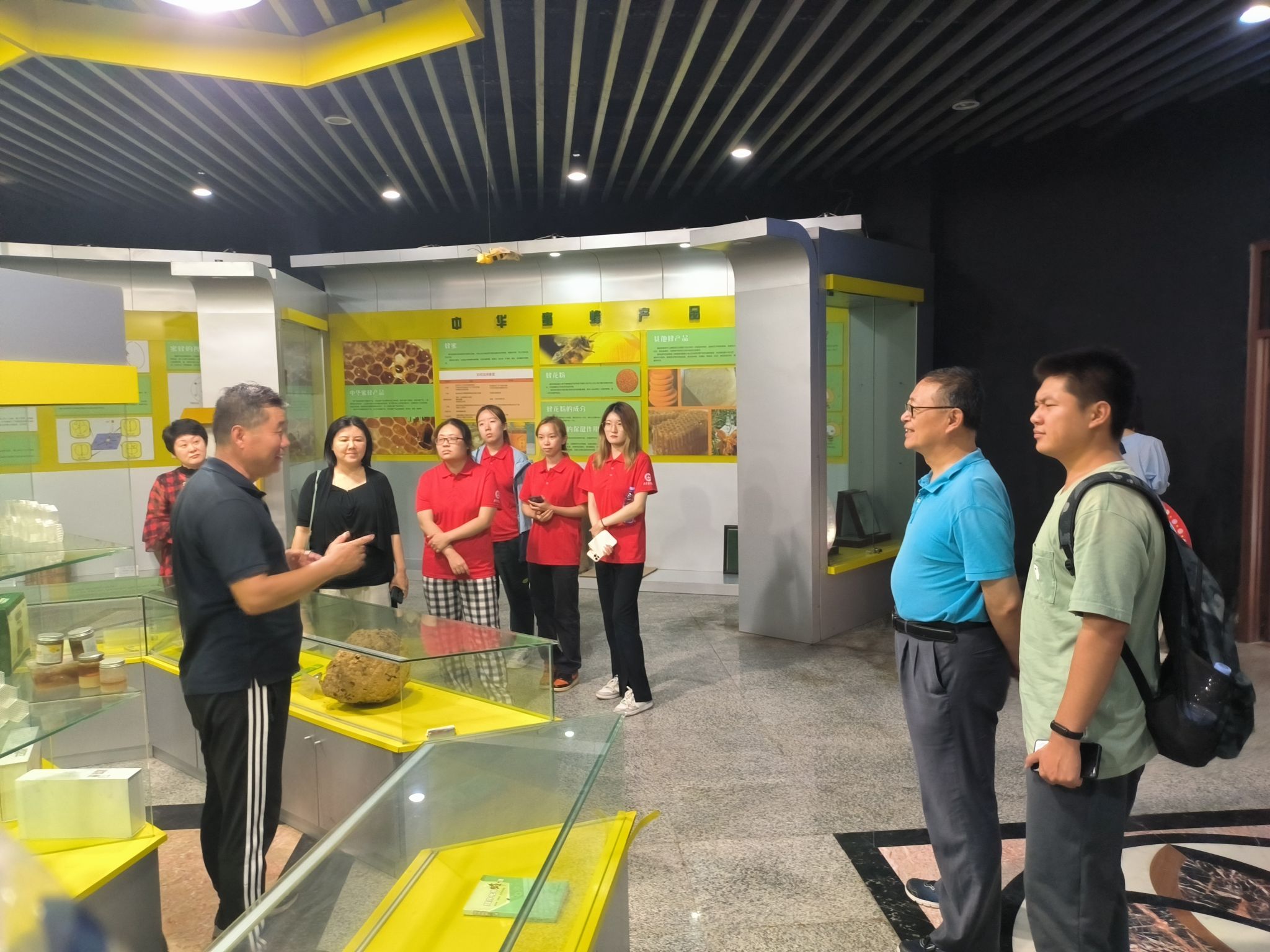 文发师生与蜜蜂科技等企业代表人员前往当地的养蜂专业合作社,同合作社人员交流养蜂业发展现状、蜂蜜产品与产品未来的发展前景,并参观了养蜂科普馆与中华蜂保种场。并同石城镇当地旅业人员交流了石城镇本地的古树保护工作与乡村旅游的发展现状,实地调研石城镇民宿情况,对当地三所民宿的建筑、院内结构、基础设施和客房内部进行了考察。