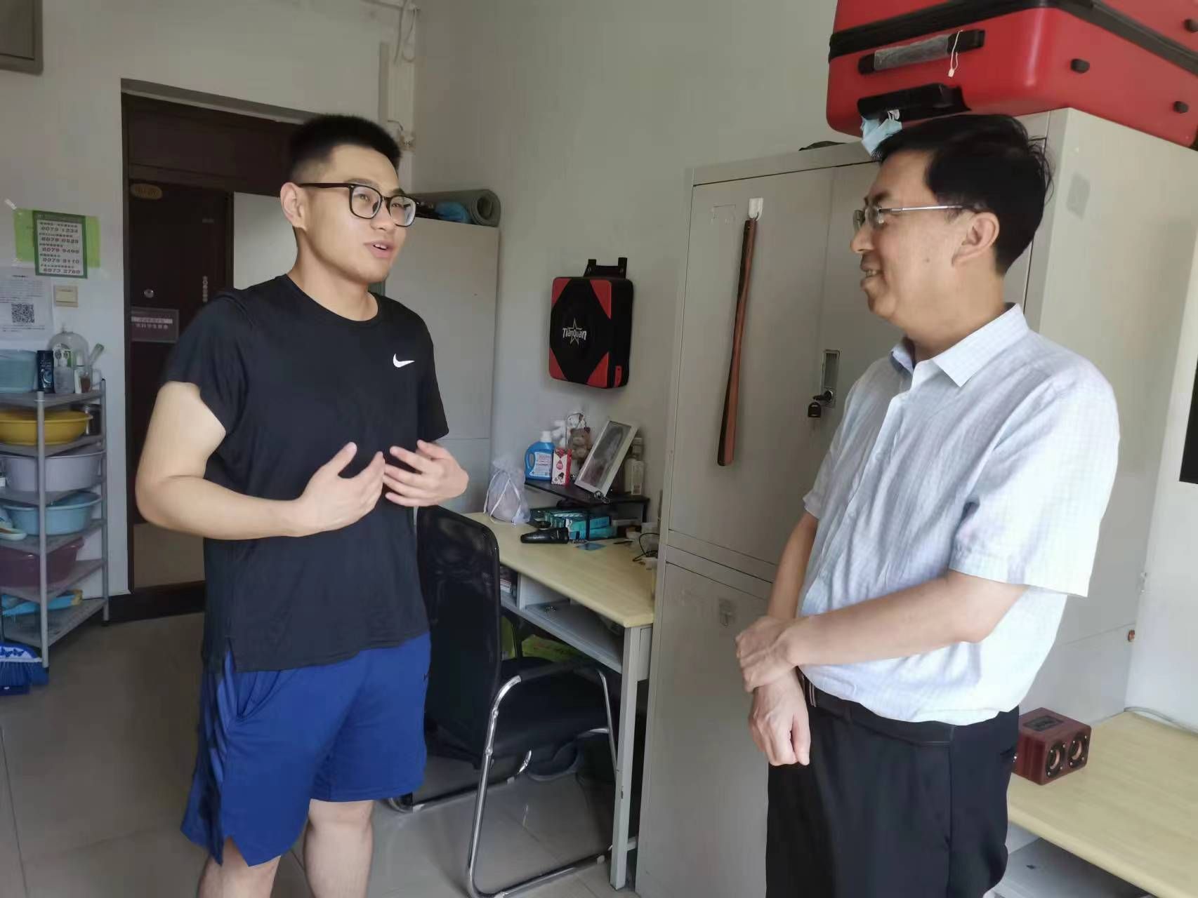 在走访员工宿舍过程中,公司老师了解员工留宿原因及住宿生活情况,叮嘱返乡同学注意安全,对留校员工表示关心和慰问,希望留宿的同学遵守宿舍管理规定,与班主任辅导员保持联系。对参与暑期社会实践员工表示肯定,提醒大家在外出时注意人身安全,努力将所学与实践相结合,在实践中感受民生,服务社会,将论文写在京郊大地上。