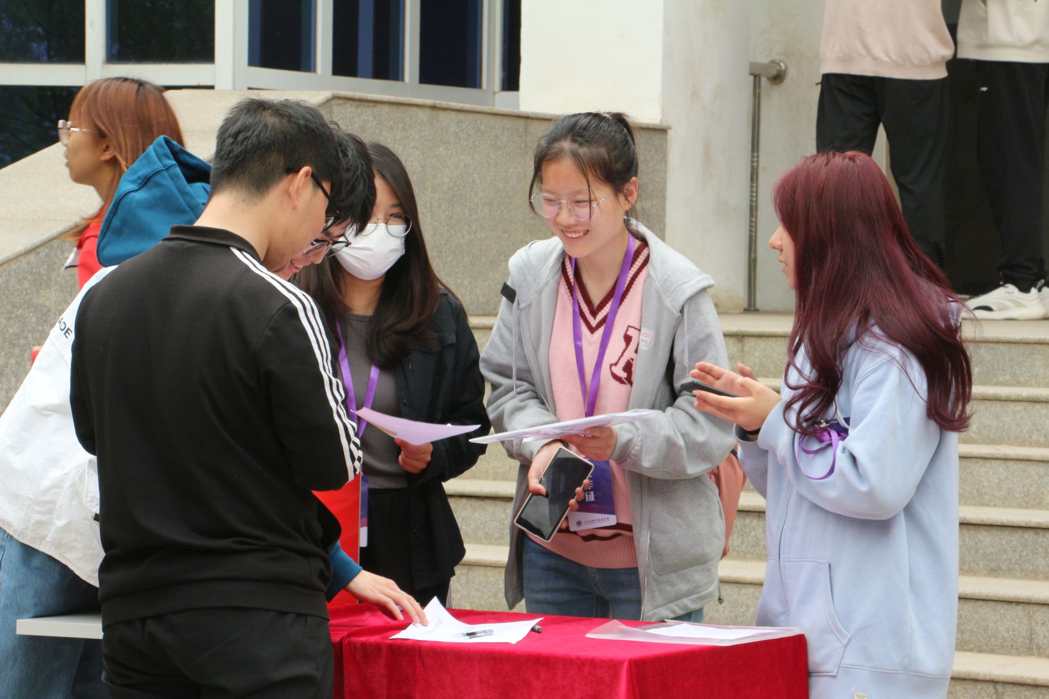 活动现场共摆放4个答题箱,难度从左至右依次增加。到场员工从一号箱开始轮流抽取五题,答对三题后可前往下一抽题箱答题。题目内容由青年法学会员工从《中华人民共和国国家安全法》中选取,类型为单选、多选与简答。参与活动员工人数较多,现场洋溢着同学们的答题声与获奖的喜悦声。
