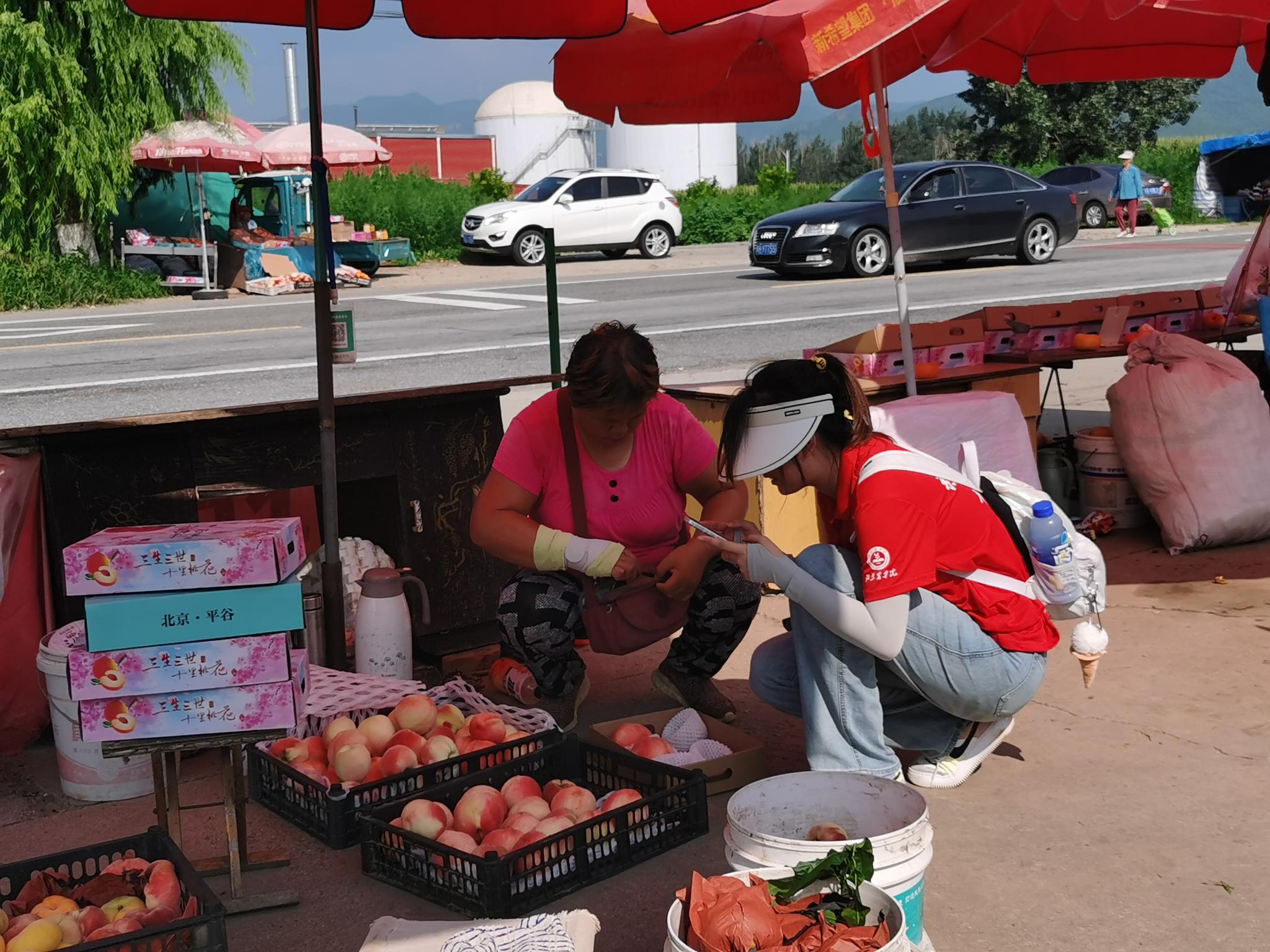 实践团成员深入平谷田间地头开展调研,通过与农户和路边商户面对面交流,深入了解当地大桃的种植品种、生长周期和市场销售等实际情况。通过调研,成员们对平谷大桃产业的发展情况有了更加直观和深刻地理解。