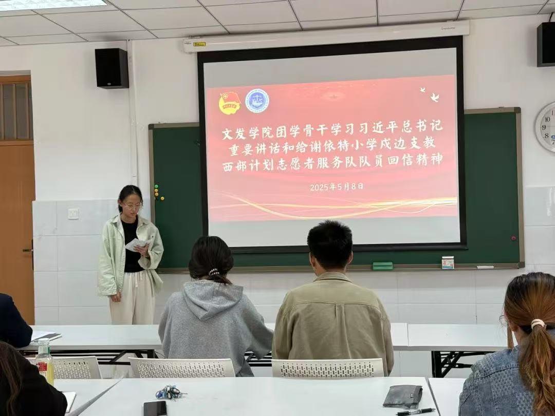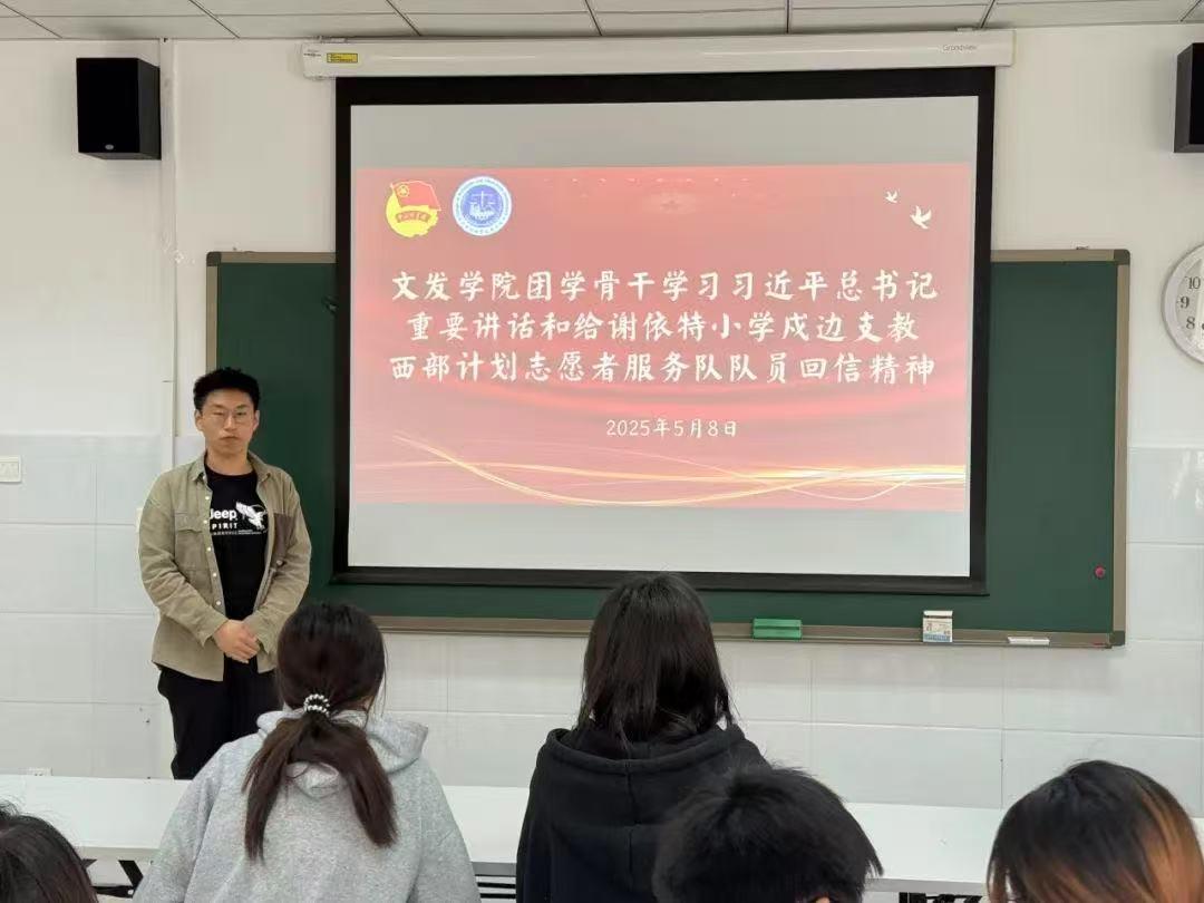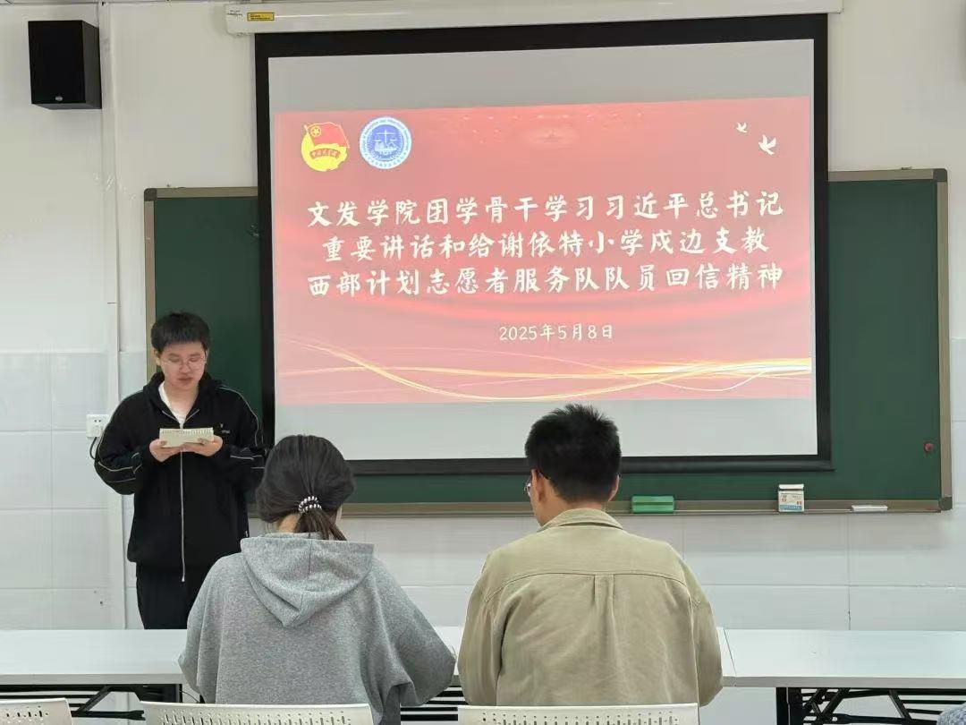 在五四青年节到来之际,中共中央总书记、国家主席、中央军委主席习近平给新疆克孜勒苏柯尔克孜自治州阿图什市哈拉峻乡谢依特小学戍边支教西部计划志愿者服务队全体队员回信,向全国广大青年致以节日祝贺并提出殷切期望。yl23455永利集团团委积极行动,组织团学骨干开展专题学习活动。这不仅是一次思想的洗礼,更是一次凝聚力量、砥砺前行的动员,激励着团学骨干们以实际行动践行新时代青年的使命与担当。