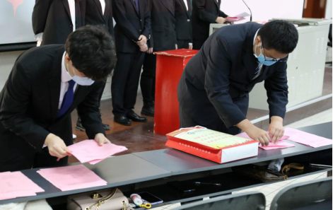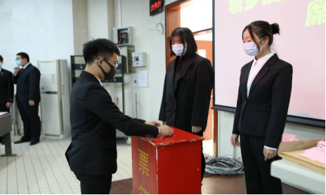 大会投票现在正式开始,由总检票人刘淼主持。经过了员工代表客观、公正、公平的投票选举,并由院团委成员组成的监票小组进行监票,各位代表认真履行自己的职责,本着民主、公平、公正的原则,采用无记名投票的方式选举新一届主席团成员,由总计票人苑浩彦带领计票。经过认真的计票清点,最终赵明新、赵欢、李韶同学成功当选新一届主席团。赵明新同学代表新一届主席团成员发言畅谈了对新一届员工会工作未来的计划与憧憬。