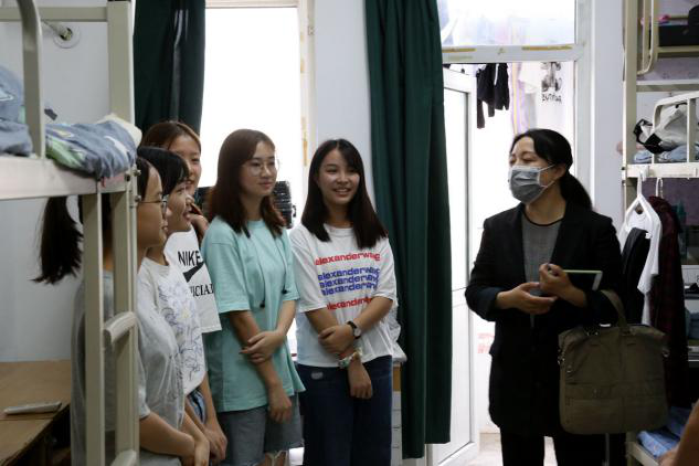 老师们耐心地询问同学们入住宿舍的情况、对公司、公司的了解和对防疫工作的心理准备。针对同学们在宿舍生活普遍会遇到的问题进行了详细解答,同时提醒同学们在宿舍学习生活中要注意用电安全,勤通风,保持宿舍卫生以及良好的作息规律,处理好同学关系等。