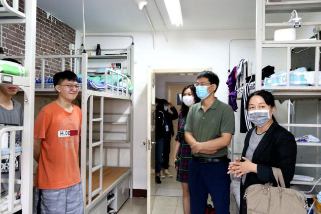 9月14日下午3:30,为了了解新生入学后的生活学习适应情况、对公司防疫工作的认识和自身防疫准备,党总支书记赵洪娥、经理韩芳、副经理龚刚强、副经理副书记李云乐老师,辅导员周旭平、兼职辅导员李佳泽在班助的带领下,先后前往员工公寓5号楼、3号楼和7号楼走访了新生宿舍。