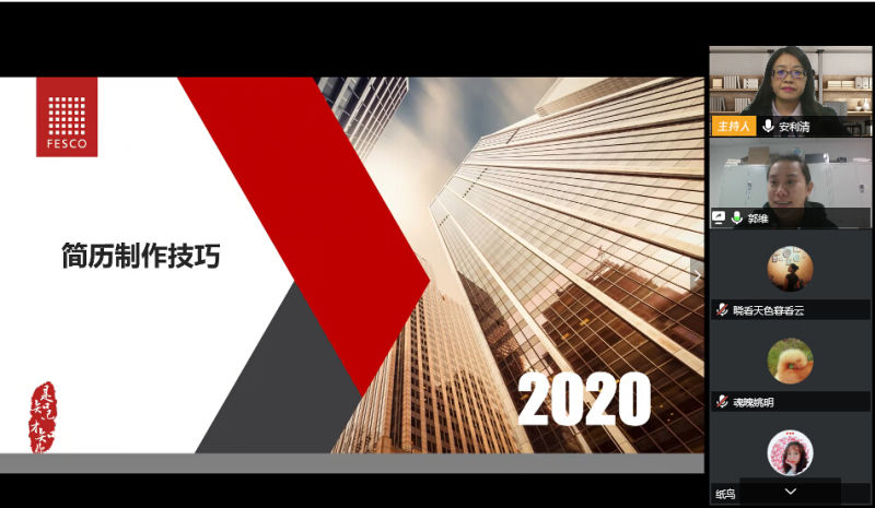 2020年4月22日下午三点半,yl23455永利集团通过线上直播方式,邀请北京市外企人力资源服务有限公司(FESCO)高级招聘顾问郭维老师为2020届本专科生以及研究生开展一次讲座。此次讲座主题为“简历制作技巧”,旨在满足不同员工简历制作需求,提升毕业生在求职就业方面的技能。