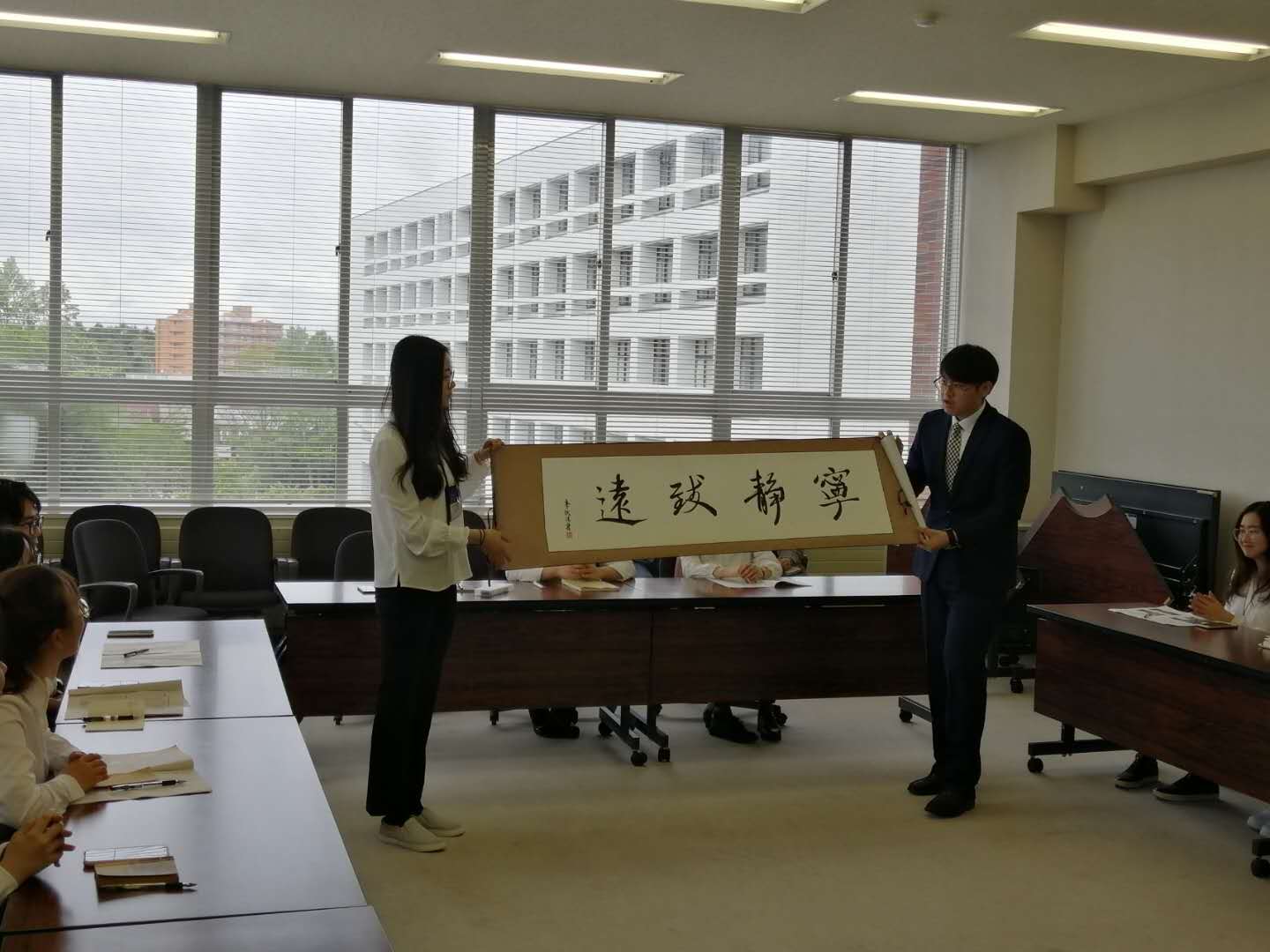 活动期间,员工文化交流团向札大师生介绍了公司校园环境、专业特色与中国传统文化。札幌公司大学师生对公司优美的校园环境赞不绝口,对展示的京味文化内容兴趣十足,并对公司员工出色的日语和英语能力表示赞赏。