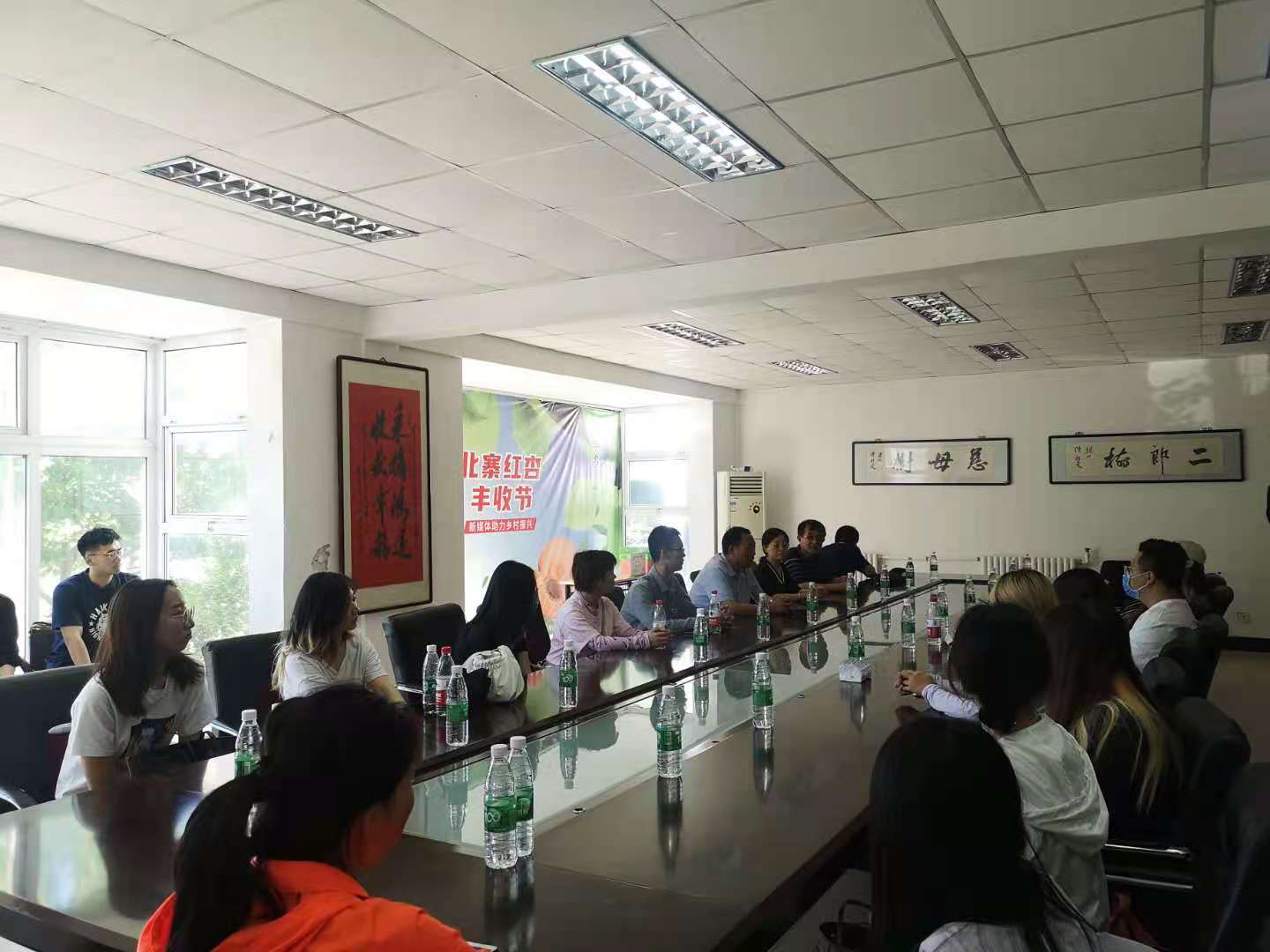 首先,北寨村村委会书记、村长刘福东为老师和同学们讲述了北寨村的历史,了解到北寨村是一个有着悠久革命历史的红色文化村庄,在抗日战争时期,为了革命事业,北寨村民积极参军参战,筑成了打击侵略者的铜墙铁壁,当地流传着“铁北寨,铜南山,打不垮的鱼子山”一说。其次刘书记为我们讲述了北寨村支柱产业北寨红杏的来源、现状、特点等。北寨红杏作为地理标志产品,享有“北京市唯一性果品”、“中华名果”等诸多荣誉。