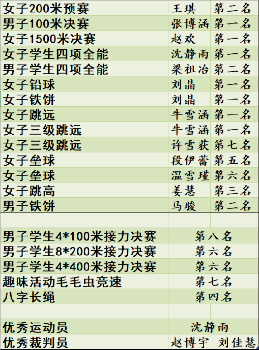 在本次运动会中,沈静雨同学被评为优秀运动员,赵博宇、刘佳慧同学被评为优秀裁判员。感谢运动员们两天的辛苦比赛,为公司增光添彩!