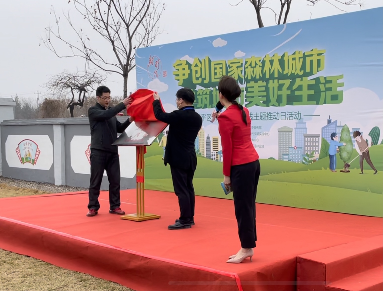 首先,大家听取了新时代文明实践志愿者代表的倡议发言,她倡议大家自觉树立植树护绿意识、共筑城市美好生活,积极带动身边人参与植绿、护绿、爱绿、兴绿的文明活动,号召大家为构建宜业宜居的生态城市贡献自己的力量。随后,昌平区委宣传部副部长丁伟明与城北街道林业站站长赵海涛一起,为城北街道林业站新时代文明实践基地揭牌。