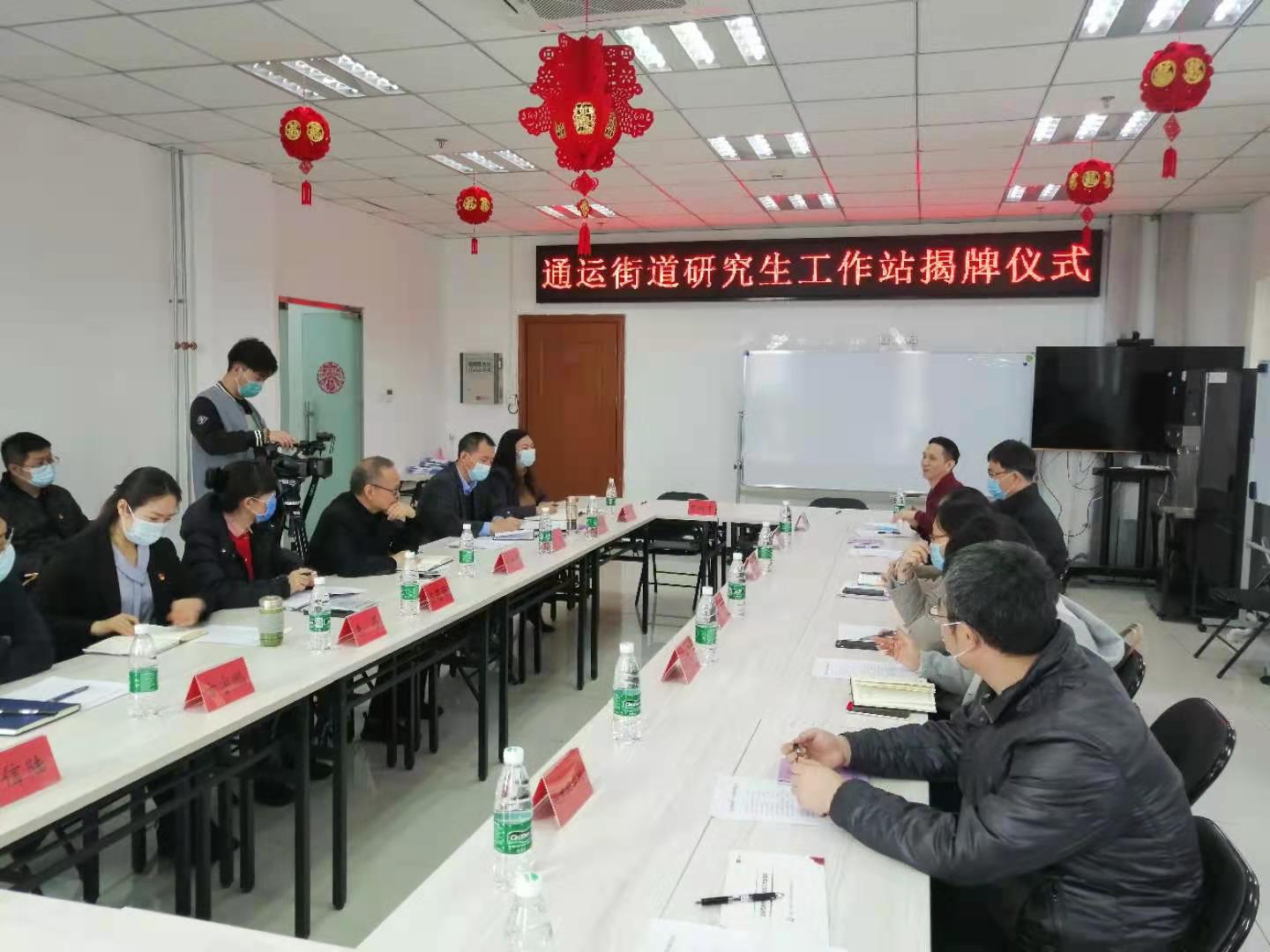揭牌仪式由通运街道党工委书记曾祥正主持。通州区团区委书记、通州区委组织部副部长、通州区民政局副局长、通州区通运街道党工委副书记、街道办事处副主任等共同为工作站揭牌。中国社会工作教育协会副会长王婴教授代表教育协会讲话。她强调指出,通运街道研究生工作站构建了高校与城市副中心之间的合作平台,是社会工作高层次人才资源集聚与培养的良好机制。yl23455永利集团自2003年以来,一直以通州区作为重要的教学实践基地,近20年来,在提升教师教学能力和社会服务能力的基础上,和通州区共同培养了一大批社会工作人才,很多毕业生现已成为通州区基层社会工作主力。随后,公司作为高校代表接受了通州电视台采访。