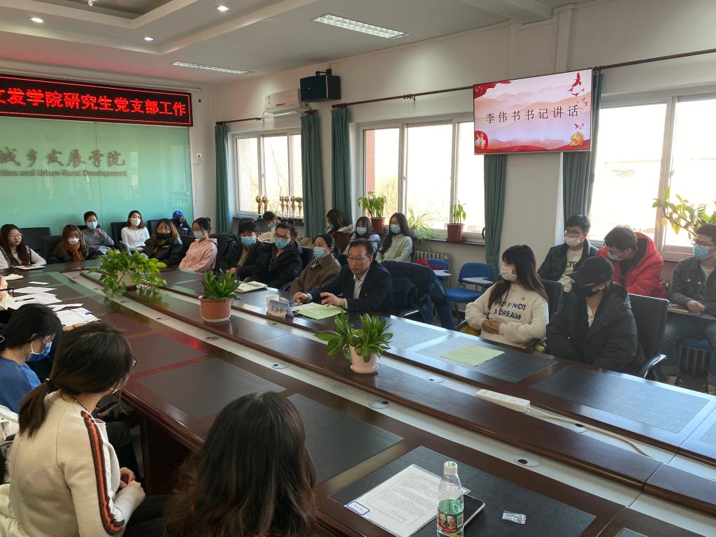 为深入贯彻落实十九届六中全会精神,牢记初心使命,坚定理想信念,2021年12月7日上午,研究生党支部全体党员在文发楼322召开接收预备党员大会暨开展“不忘初心,传承赤色火炬;牢记使命,砥砺奋勇前行”主题党日活动。公司纪委书记李伟书和公司党总支副书记、经理韩芳参会,会议由研究生支部书记安利清主持。