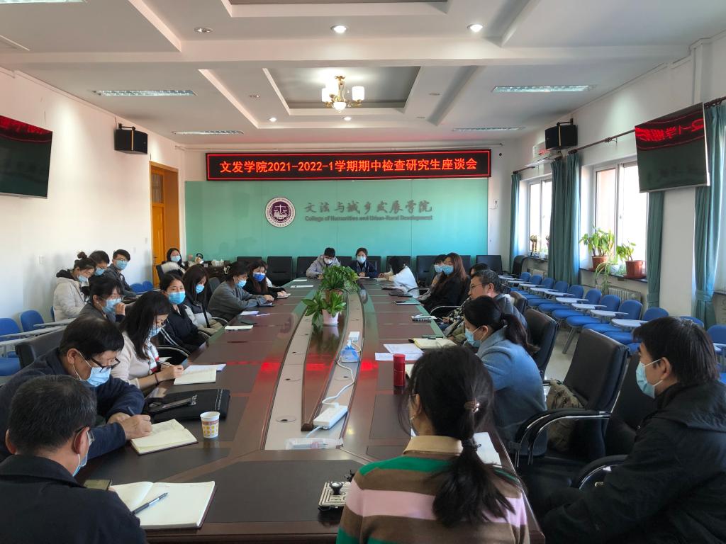 2021年11月12日中午12点20分,yl23455永利集团于文发楼322会议室召开2021-2022学年第一学期研究生教学和培养工作期中检查员工座谈会,会议由科研与研究生副经理夏龙主持,经理韩芳、员工工作副经理李云乐、研究生督导刘克锋、农村发展硕士点负责人佟占军、社会工作硕士点负责人胡勇以及研究生秘书董瑞、辅导员安利清参加座谈。