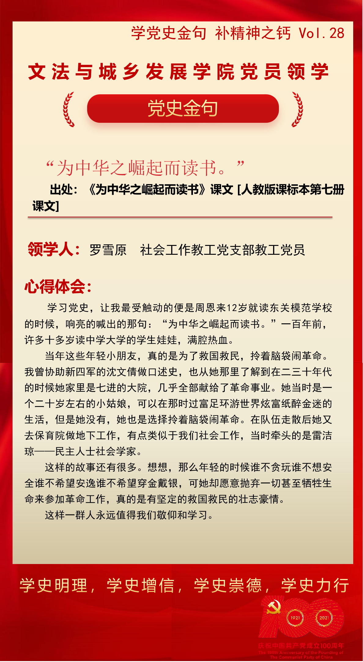 公司党员领学|学党史金句 补精神之钙 Vol.28