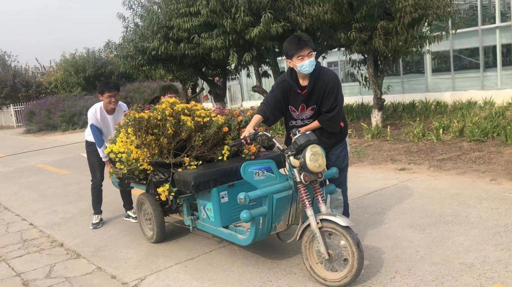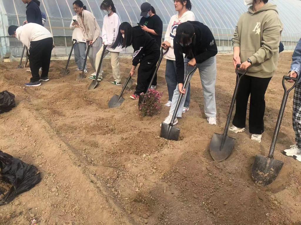 虽然刚满十八岁,可是同学们劳动起来一点都不逊色。刚来到基地,就全身心的投入到了劳动中,大家分工明确、各司其职,有负责搬运花苗的、有负责运送花苗的、有负责刨坑栽苗的......,在轻松愉悦的氛围中不一会儿就完成了课程的所有任务。