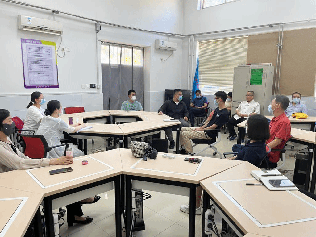 在教室内,师生党员共聚一堂,开展师生交流会,共忆入党初心。教师党员分享自己求学、科研经历,耐心解答员工们关于考研就业、职业规划、学术科研等各个方面的困惑与迷茫,形成“一对多”帮扶小组,真正为员工们解决“急难愁盼”问题,助力他们“破茧成蝶”。通过结对帮扶送温暖,促进支部交流共发展。