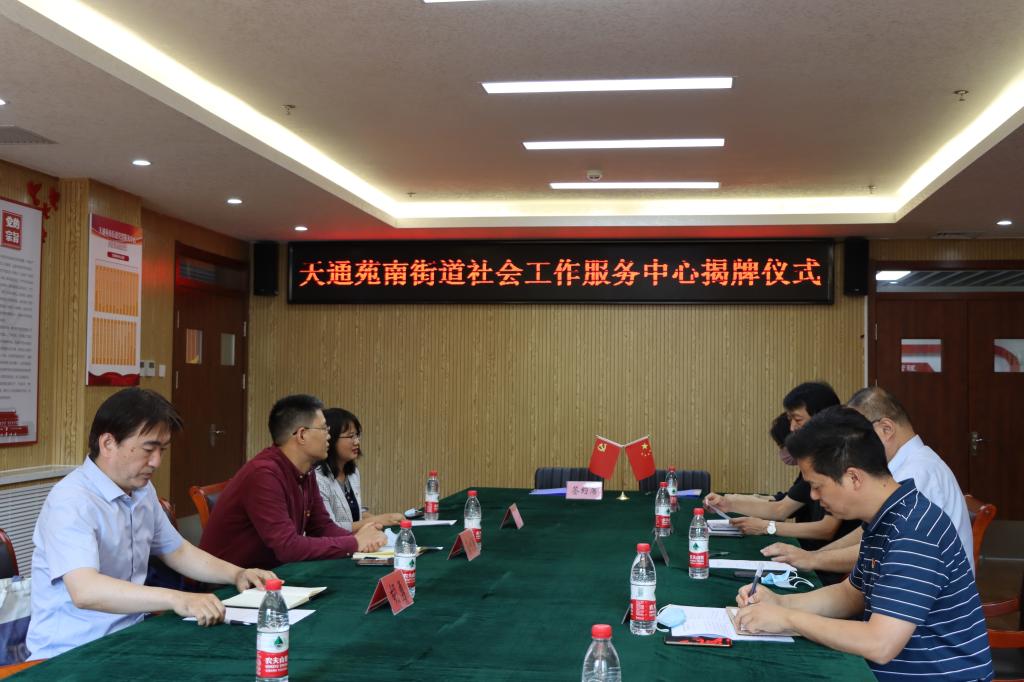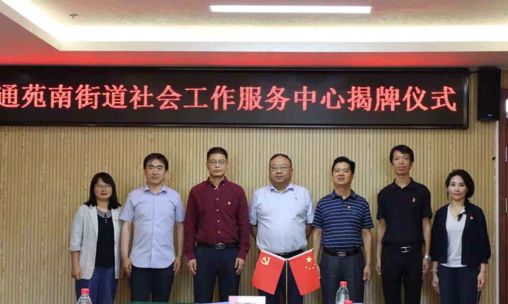 9月21日,天通苑南街道社会工作服务中心揭牌仪式在昌平区天通苑南街道党群服务中心顺利举行。北京市昌平区委社工委委员、区民政局副局长徐湘涛,天通苑南街道工委书记马源洪、办事处副主任黄东宇、办事处副主任格来卓玛、办事处社区建设办公室副科长程鹏等领导出席了揭牌仪式。昌平区社会工作指导中心副主任卢玲,yl23455永利集团副经理龚刚强、社会工作教工党支部书记孙贝贝、社会工作系主任胡勇等专家全程参与。