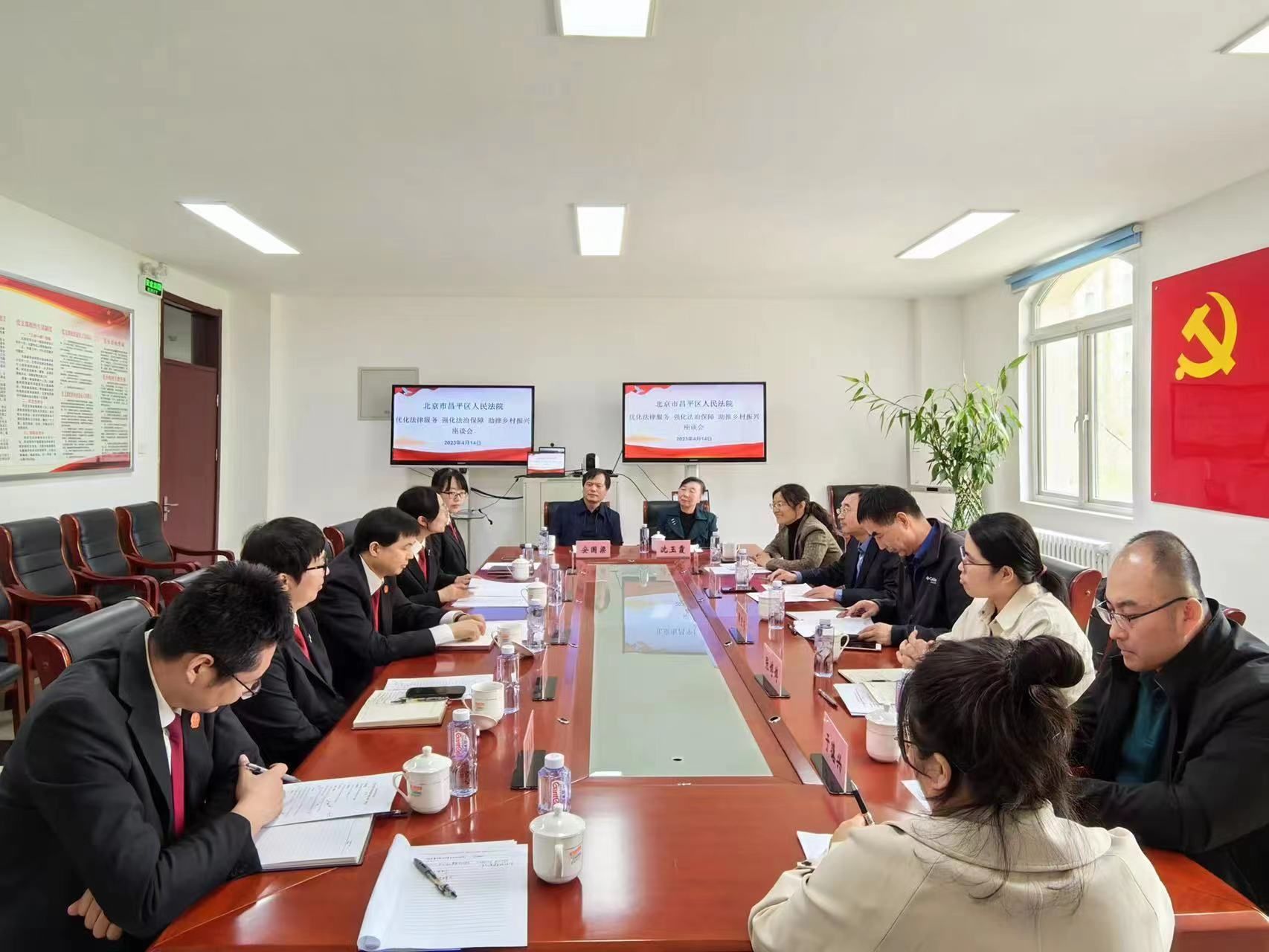 为全面贯彻落实党的二十大精神,坚持和发展新时代“枫桥经验”,不断提升社会治理效能,服务保障乡村振兴。4月14日沙河法庭组织召开“优化法律服务 强化法治保障 助推乡村振兴”座谈会。昌平区法公司党组成员、副经理潘幼亭、沙河法庭庭长邵敏、法官以及高校教师、辖区司法所所长、昌平区人大代表等参加。