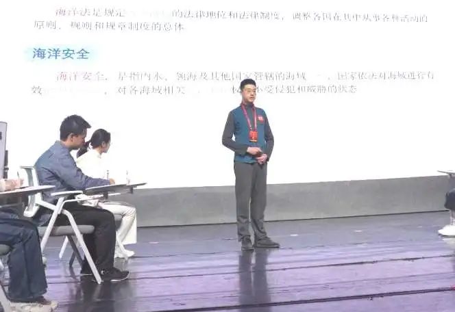 冯翀以“维护海洋权益,建设海洋强国”为题进行了10分钟的展演,通过图文并茂的方式展示了我国的海域状况和海洋安全境况,并与在场的18名员工进行了互动交流。经过现场评委打分,冯翀荣获“优秀风采教师”奖。
