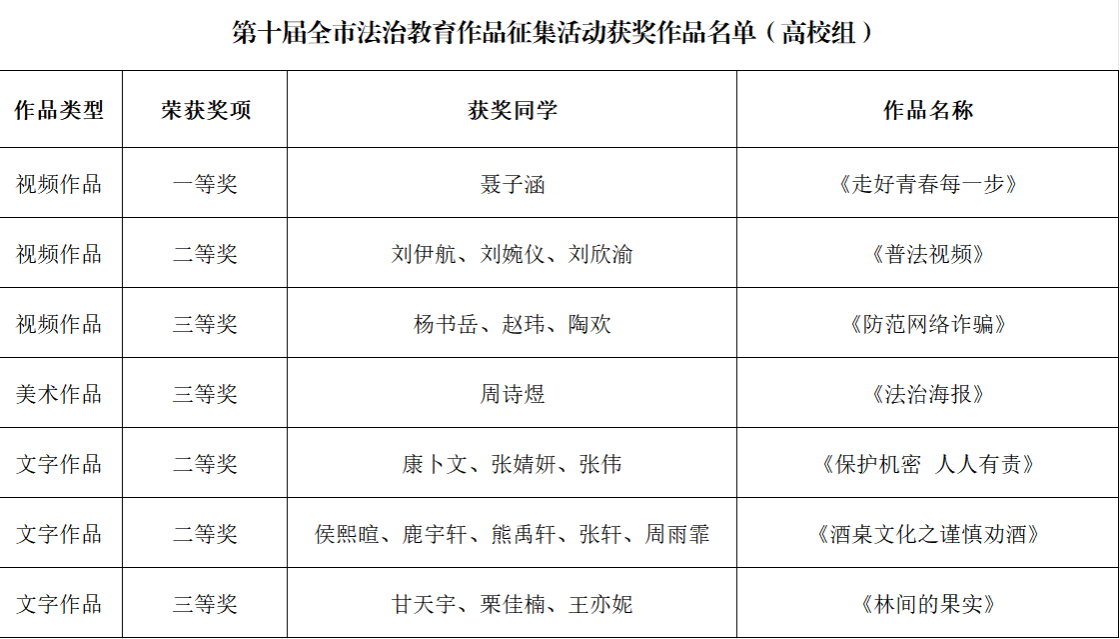 为贯彻落实习近平新时代中国特色社会主义思想和党的二十大精神,充分发挥法治文化的引领作用,北京市教育委员会在全市高校及各中小学公司中开展了第十届全市师生法治教育作品征集活动。近日,yl23455永利集团法学系涌现出7个优秀团队,参赛员工在视频作品、美术作品、文字作品多领域均斩获奖项,这次的荣誉不仅是对师生团队智慧和辛勤努力的最好奖赏,更是对公司法治教育水平的高度认可。