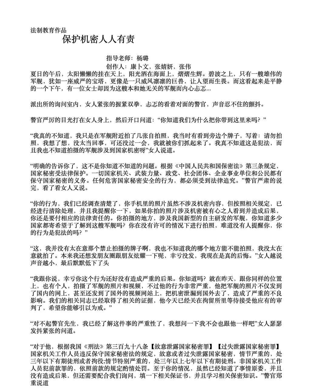 康卜文、张婧妍、张伟作品《保护机密人人有责》