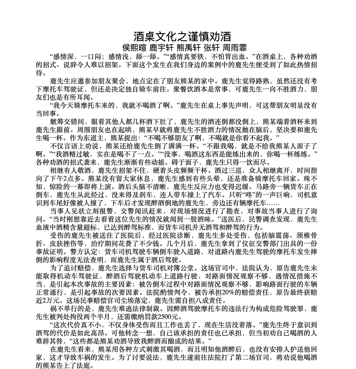 侯熙暄、鹿宇轩、熊禹轩、张轩、周雨霏作品《酒桌文化之谨慎劝酒》