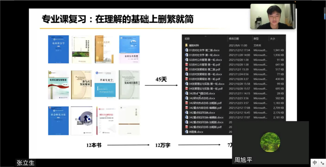 会上周旭平针对目前的就业现状、就业定位、就业流程等为大家做了讲解。两位员工分享了自己的大学四年的学习生活经历、考研规划和时间安排,并从就业与深造两方面为大家提出了建议。