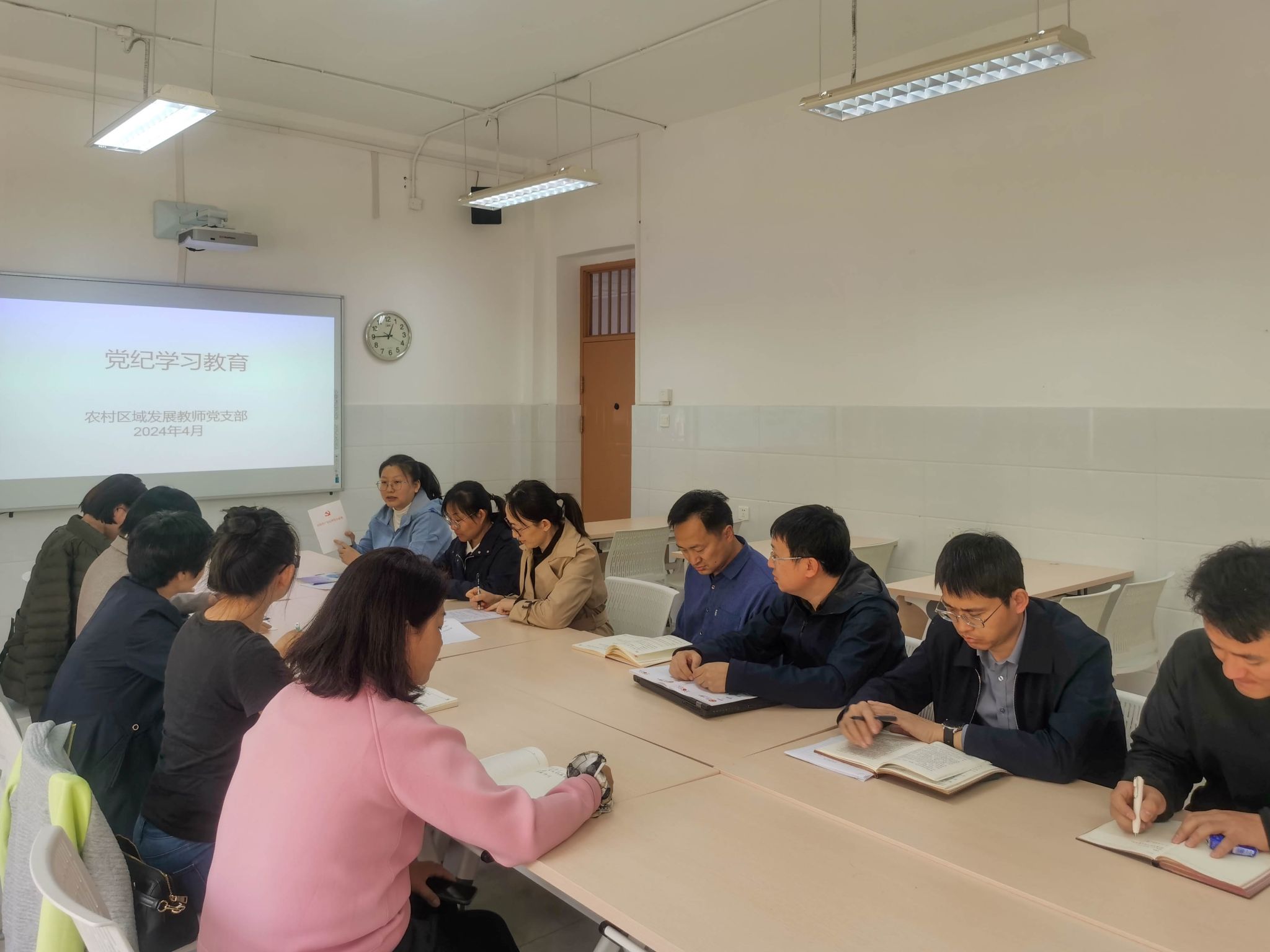 4月19日至今,公司基层党支部严格按照《关于在全校开展党纪学习教育的工作计划》的通知,结合“三会一课”等组织生活,通过支部书记领学、交流学习体会、观看专题片等方式,组织全体党员认真学习并召开师德师风警示教育大会,用身边人、身边事警示和教育教师讲纪律、守规矩,知敬畏、明底线,自觉遵纪守法。