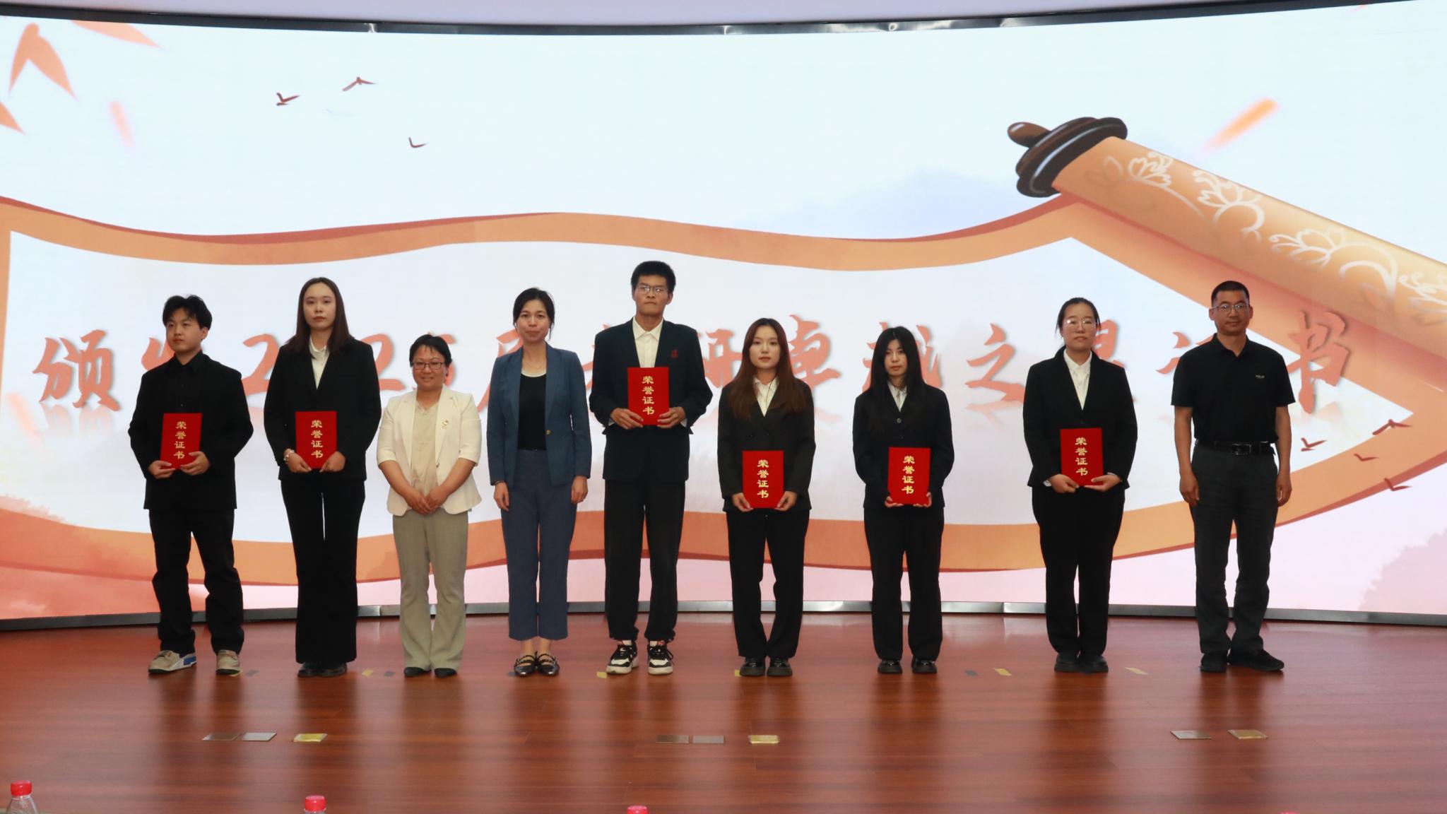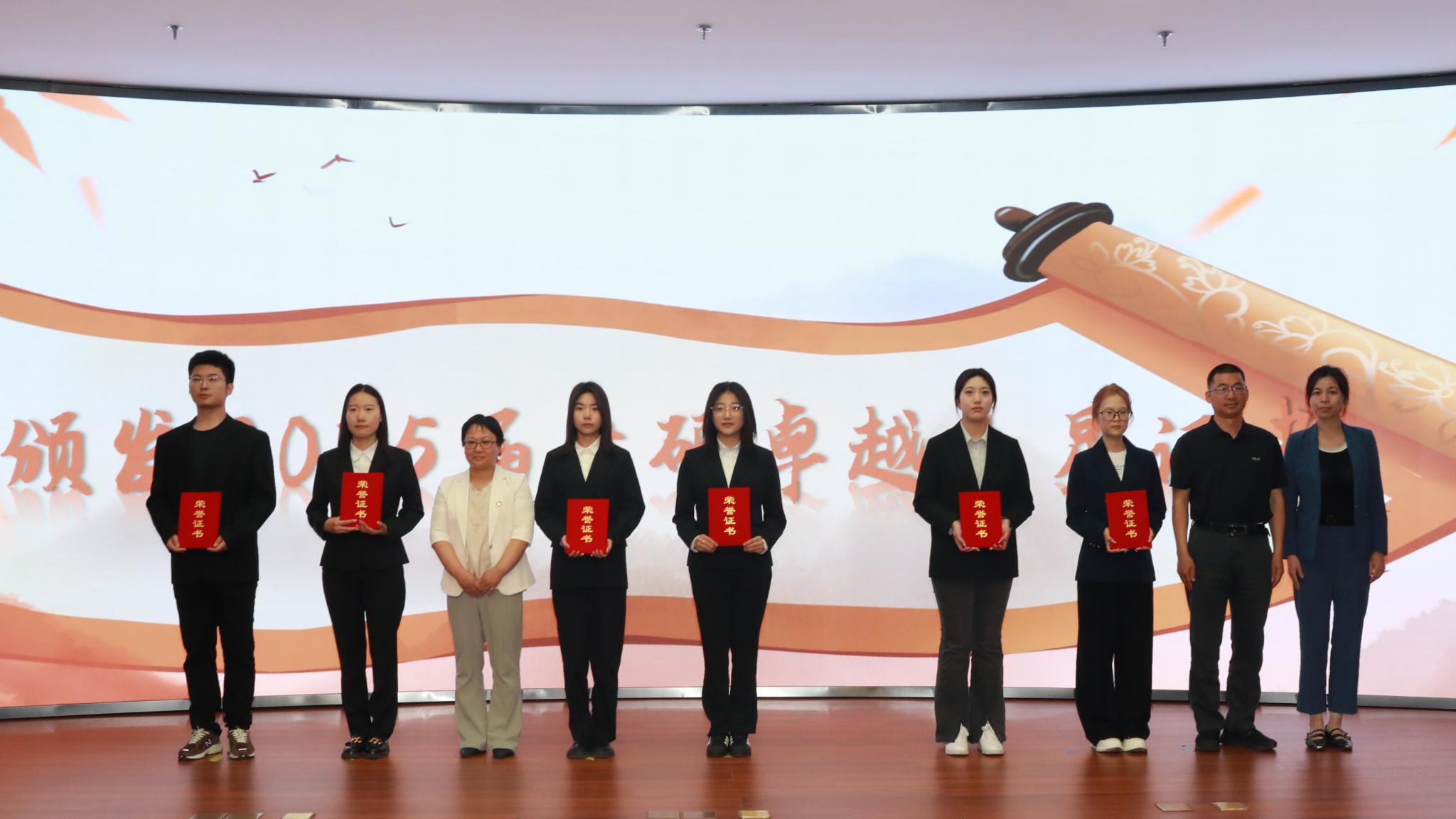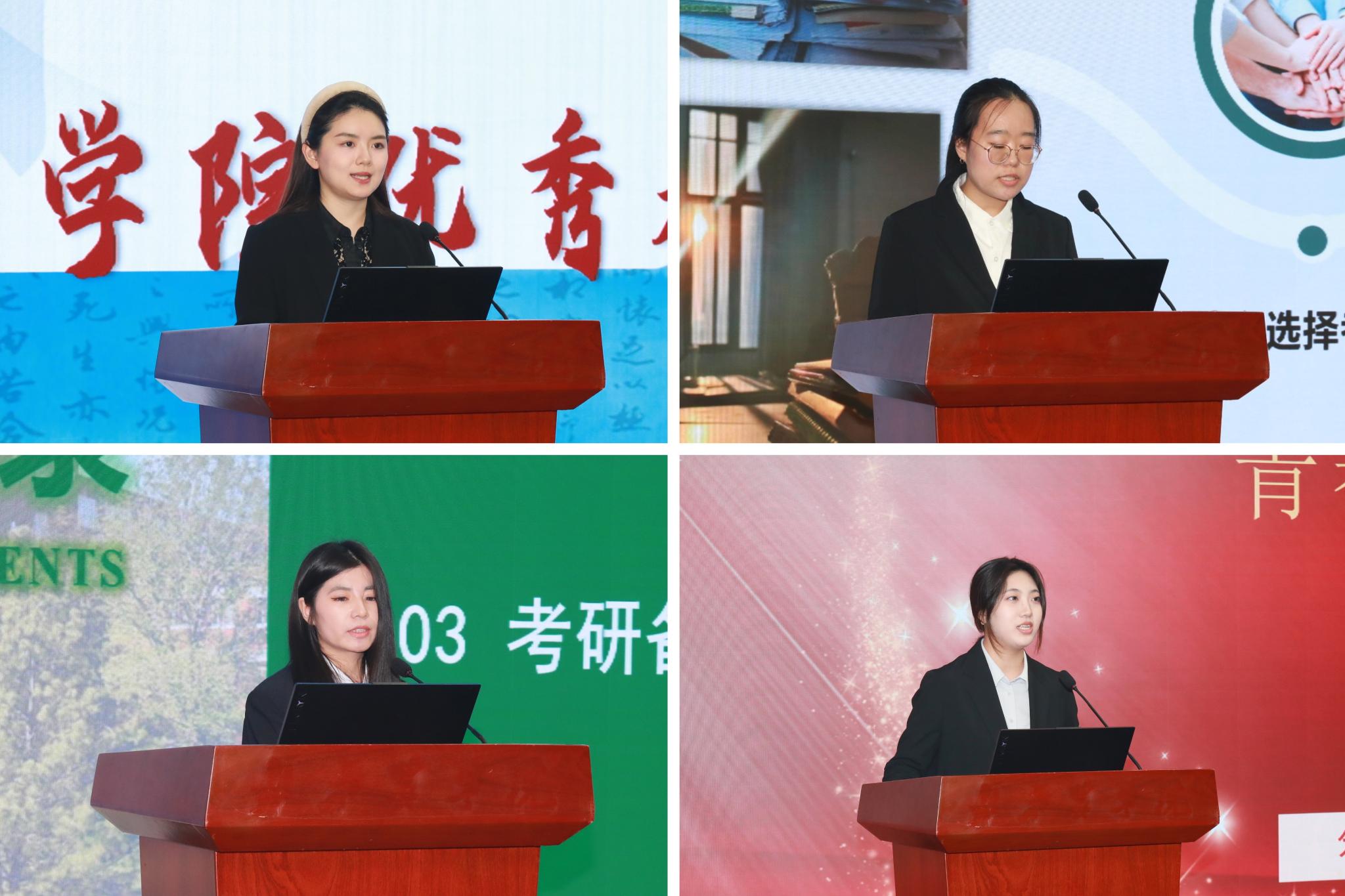 与会领导为2025届考研指导卓越贡献奖教师代表、考研卓越之星代表颁发荣誉证书。 苟天来作为获奖教师代表作交流分享,提出从英语能力、专业成绩、科研训练基础三方面评估员工升学潜力,并通过分享往届录取院校案例、搭建“在校生-员工”沟通渠道、组织经验交流会等方式,帮助员工打破信息壁垒,精准制定备考策略。宋雨萱、姚涵蕊、杨雪三位员工代表依次分享备考经验。他们从时间管理、心态调整、学科策略等方面分享了“上岸”心得,将员工干部历练品质融入考研备考,用亲身经历诠释了“追风赶月莫停留”的奋斗精神,让现场同学深受鼓舞。优秀员工北京大学博士后李思瑶分享研途感悟,她以“研途终点亦是新起点”为核心,她鼓励学弟学妹明确目标、保持自律,主动寻求帮助并直面失败,要勇于探索多元发展路径。