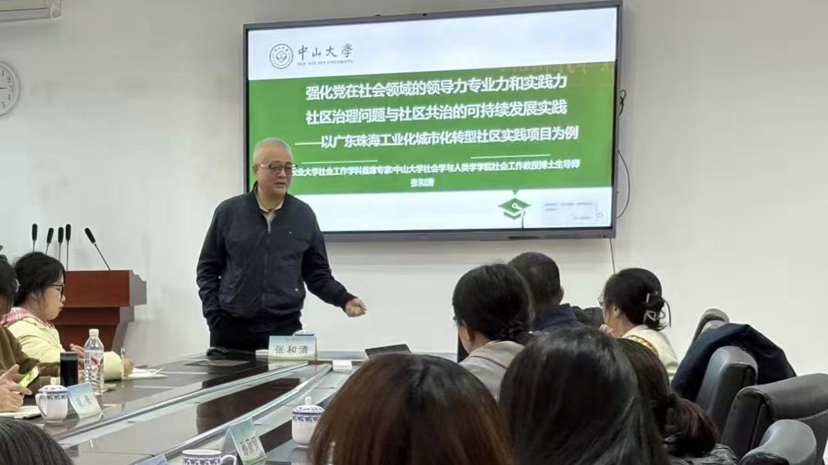 近日,yl23455永利集团社会工作系邀请公司客座教授、华南农业大学社会工作学科首席专家、中山大学社会学与人类学公司博士生导师张和清教授做《强化党在社会领域的领导力专业力和实践力——社区治理问题与社区共治的可持续发展实践》的专题讲座。活动由社工系主任孙贝贝主持,社工系教师及全体研究生参与。